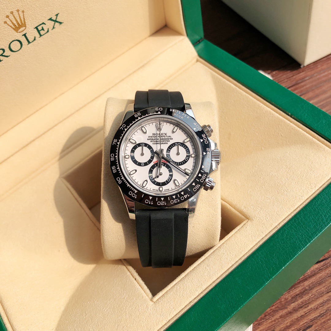The Daytona’s chronograph feature functions are activated by pushers that screw down like the winding crown when they are not in use, guaranteeing waterproofness to 100 metres. One press to start, stop or reset the chronograph produces a crisp, clear click that was perfected using the most advanced technology. watchmakers also perfected the mechanism to suit the ideal finger pressure on the pushers, and engineered it to provide an instantaneous and accurate start to the timing without sacrificing reliability.