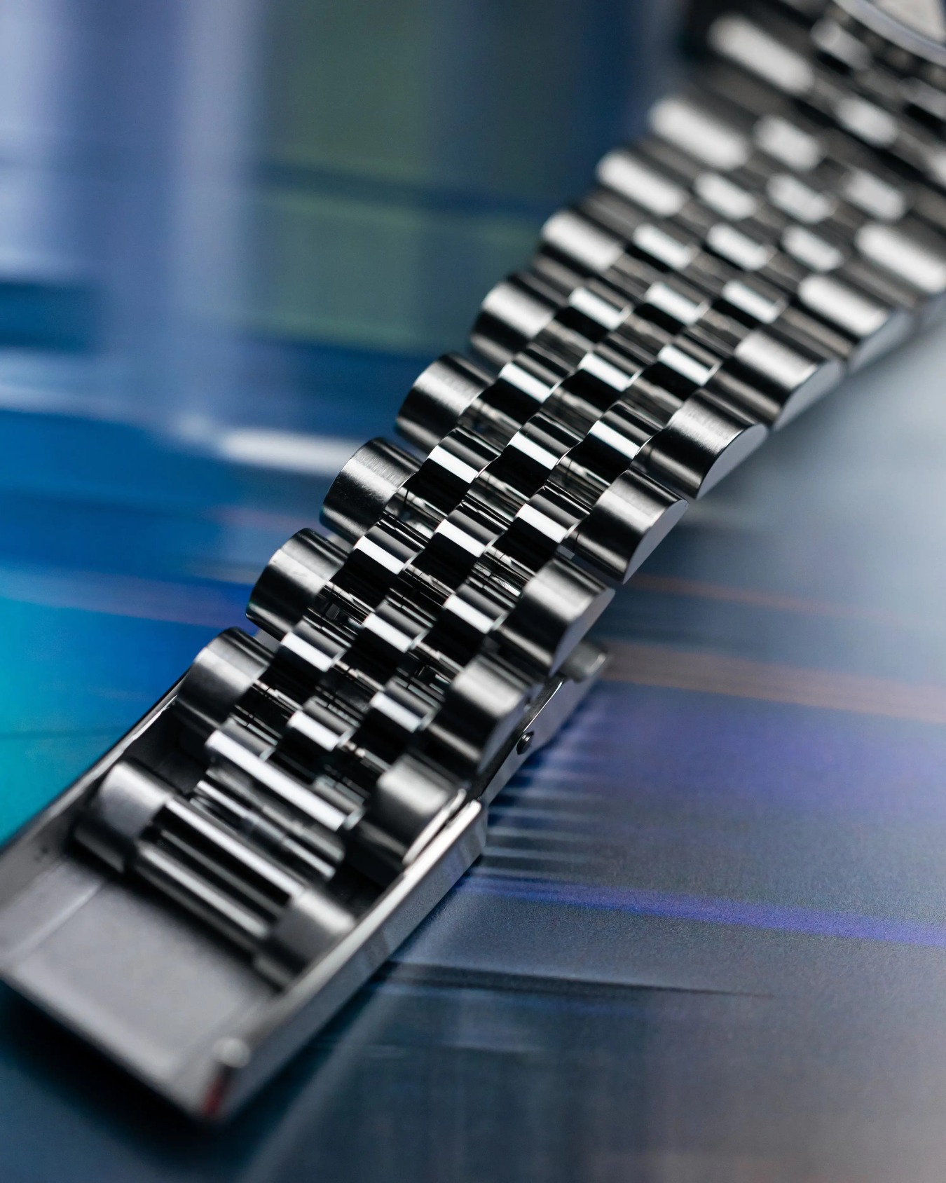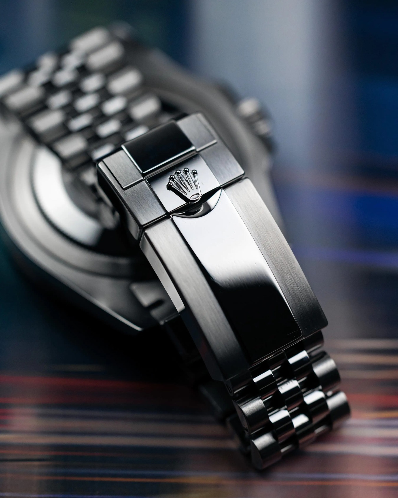 The Rolex GMT-Master II 126710 BLRO has a two-tone red-blue bezel, making the watch instantly recognizable. But the dual colors aren’t just a style element; they divide the bezel into two halves, one for daytime hours and the other for night. The bidirectional bezel is crafted from Rolex’s durable Cerachrom for fade- and scratch-resistance. The numerals are molded into the ceramic alloy and coated in a 1 micron of platinum using Physical Vapor Deposition.