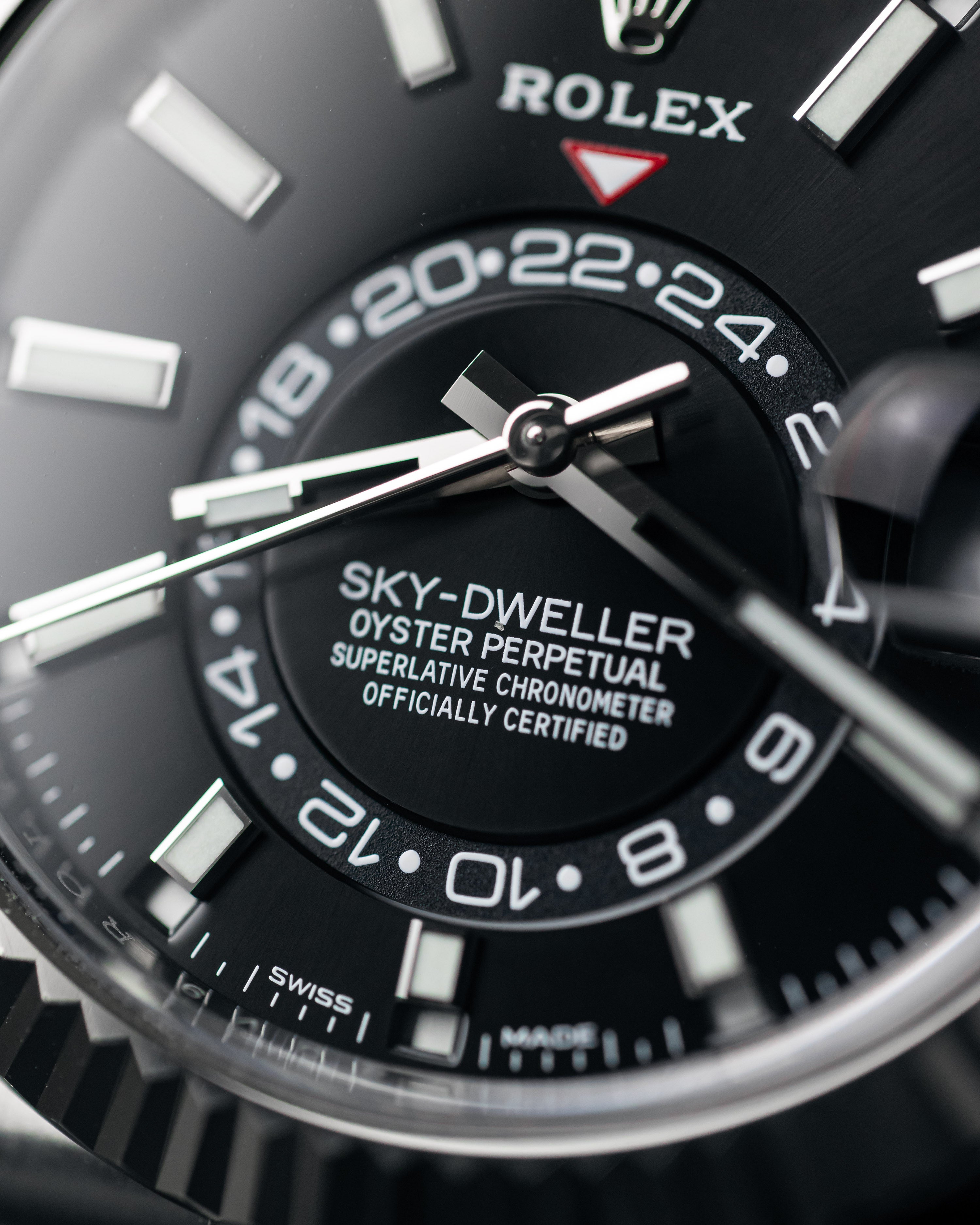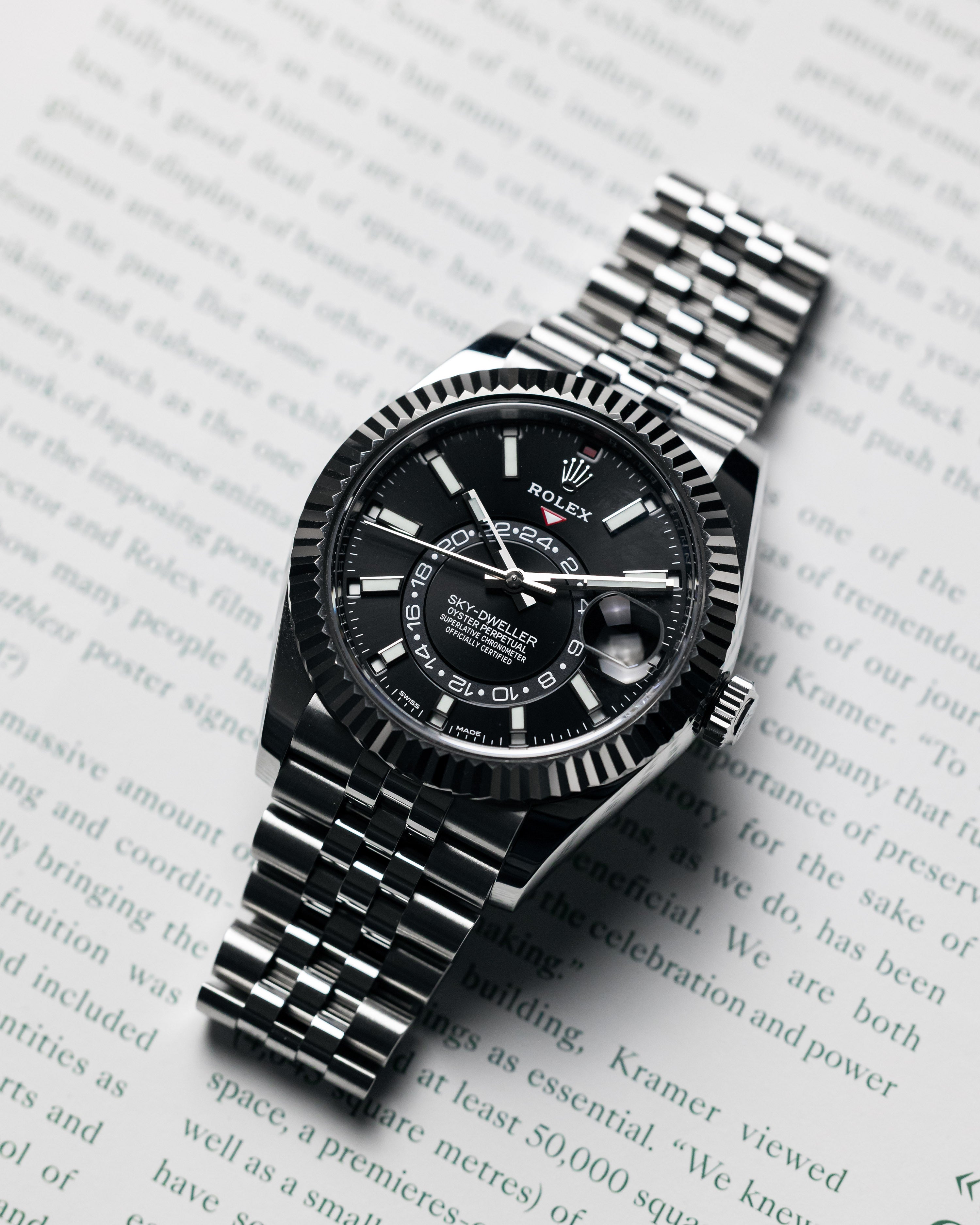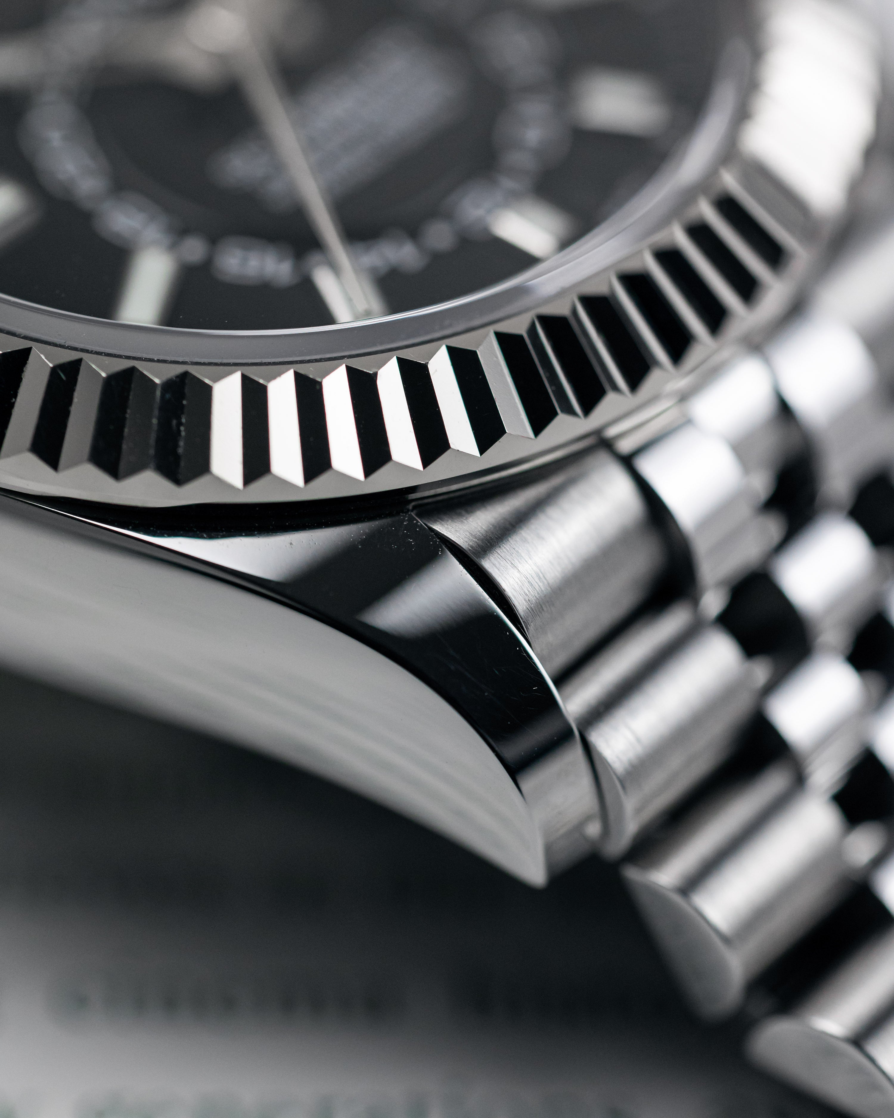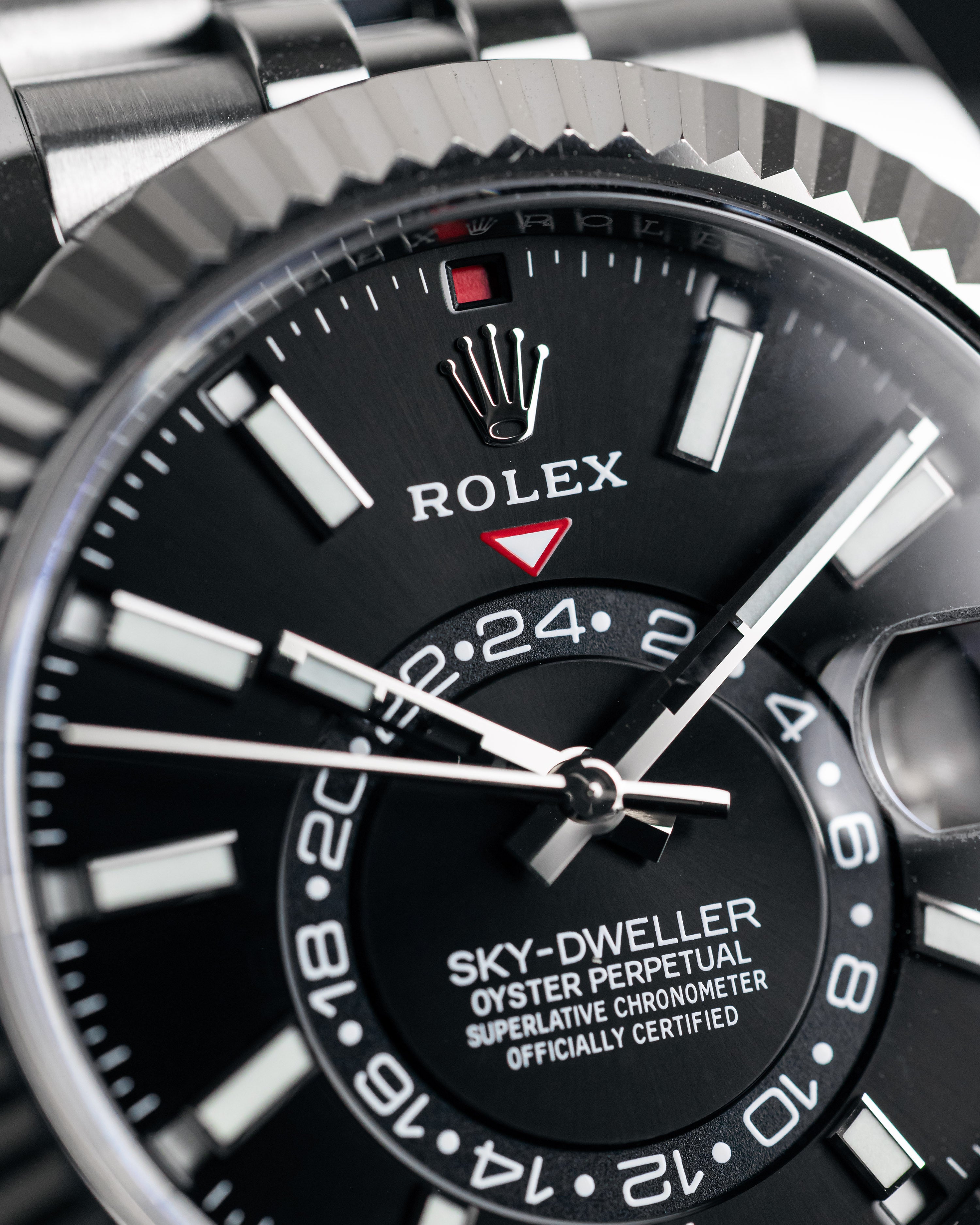 The most complicated Rolex model is back in stock with desirable black dial and jubilee bracelet. Featuring an annual calendar and GMT, the Sky-Dweller allows the busy traveler to keep track of two time zones. At 42mm in diameter, this model has been known for its pleasing wrist-presence and works really well with the jubilee bracelet.