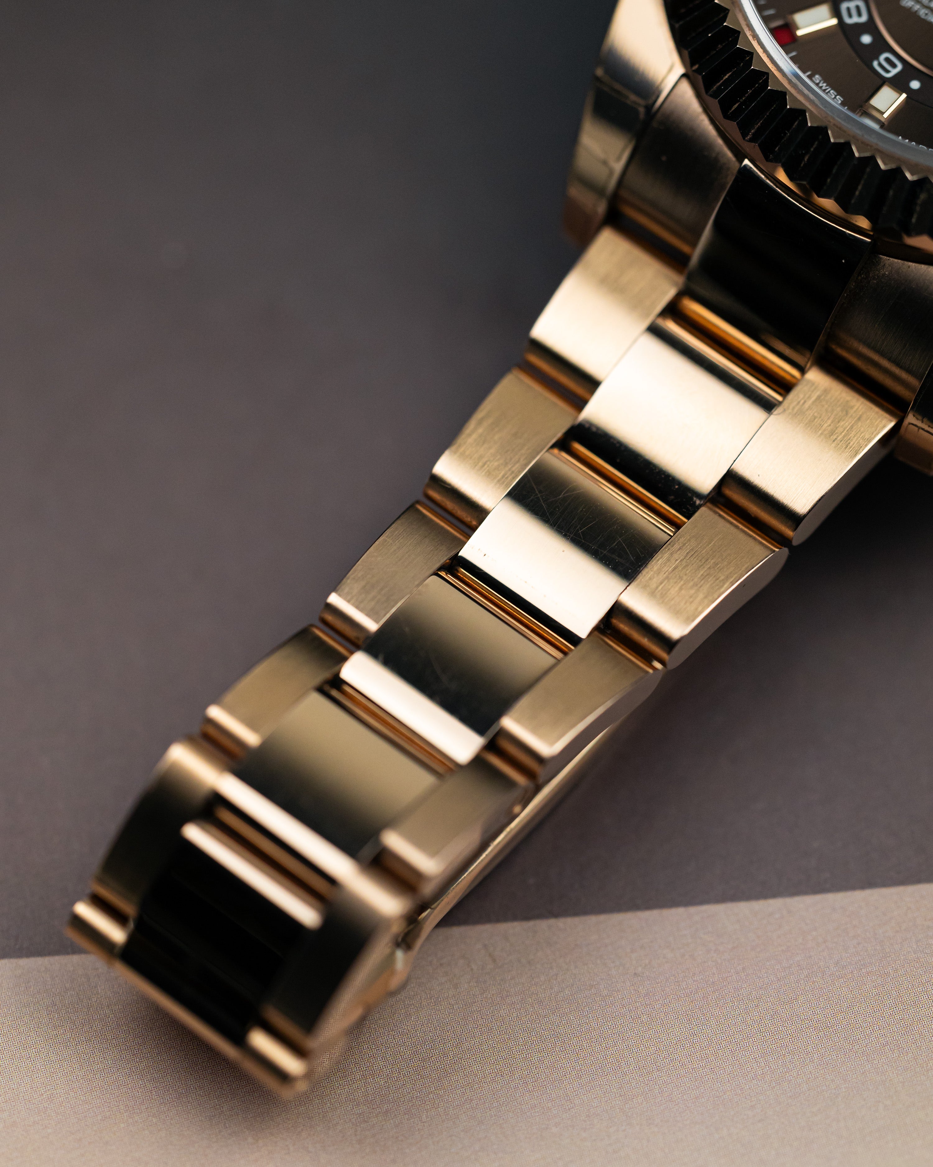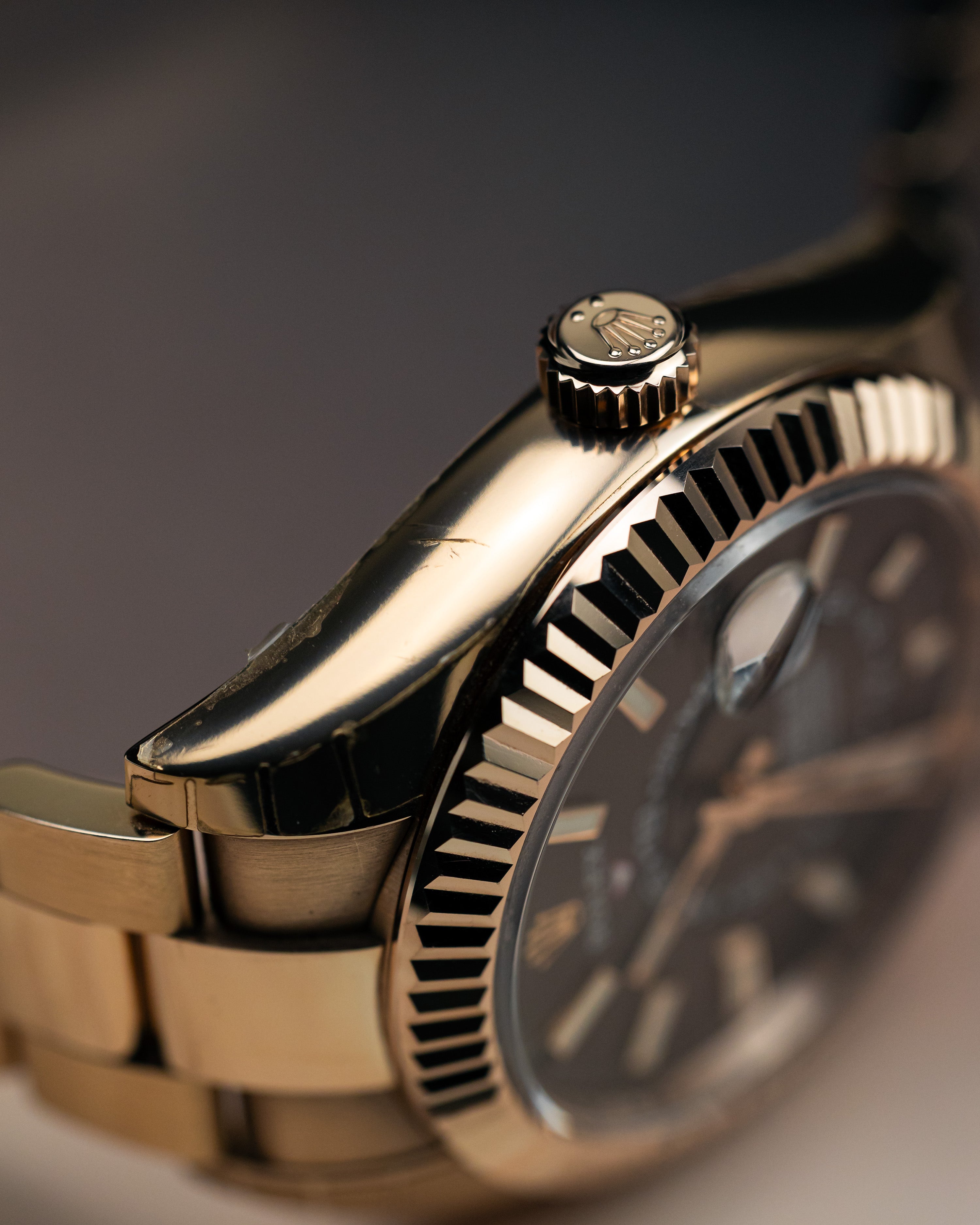 Encased in solid rose gold, the 42mm Sky-Dweller is an absolute heavy hitter. Paired with the chocolate dial balancing the warm tones of the rose gold on one of the most complex watch in Rolex’s collection.