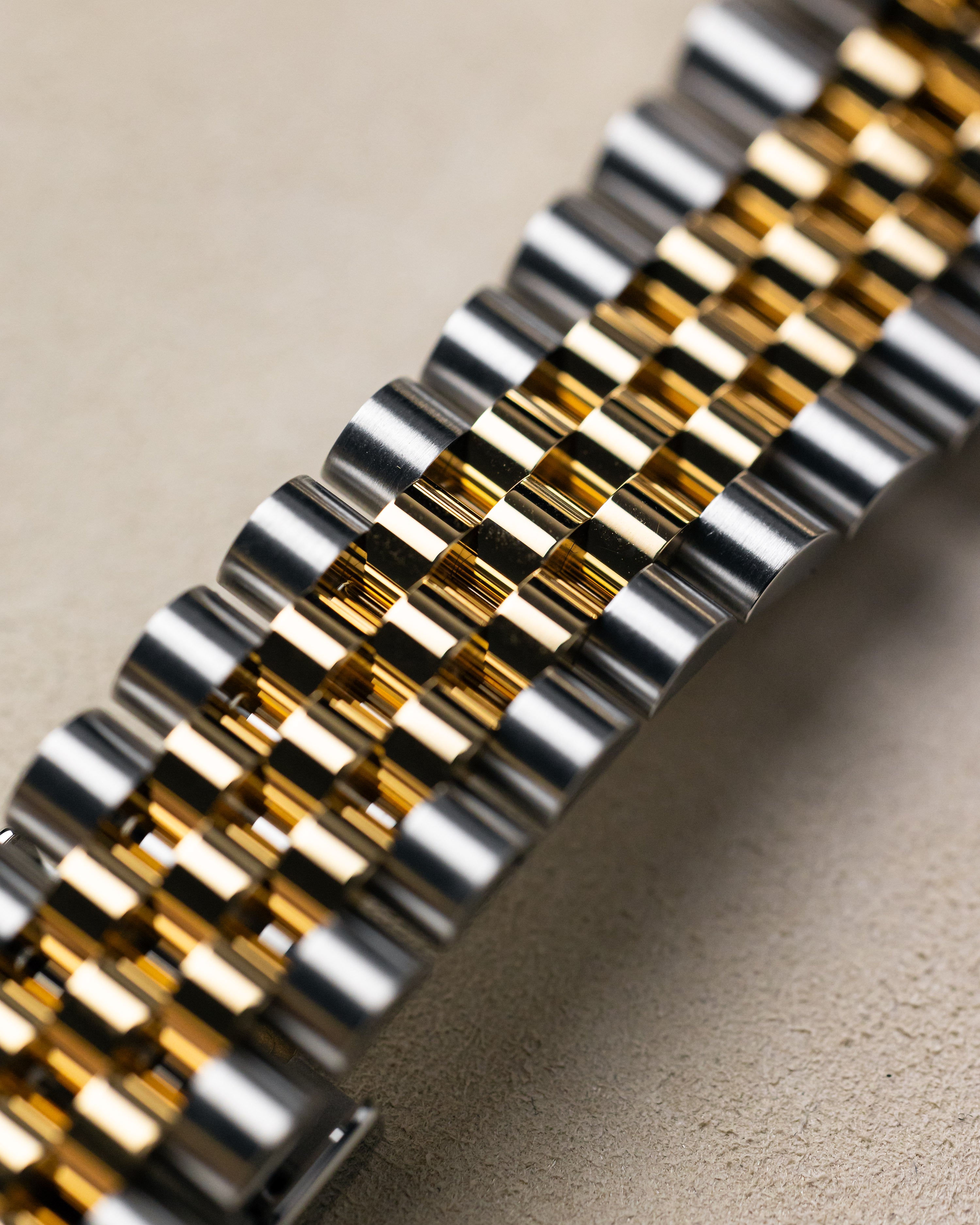Featured with the Champagne dial matching the yellow gold two-tone jubilee bracelet.