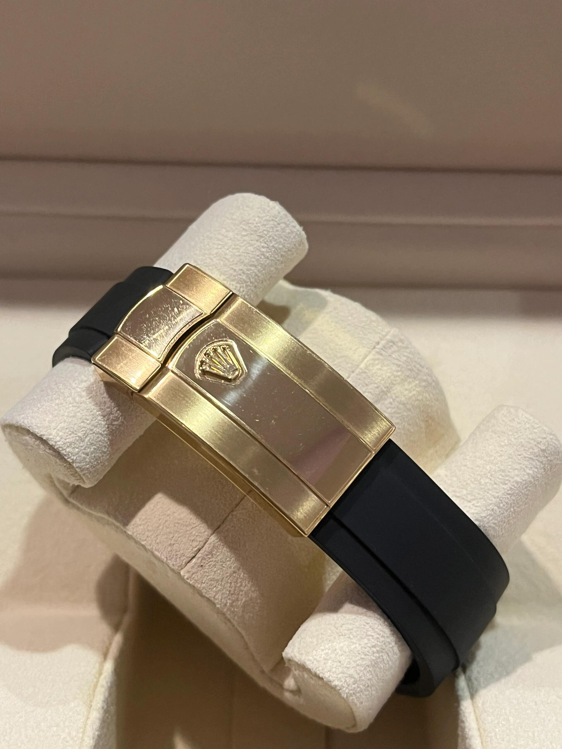 The Rolex fluted bezel is a mark of distinction. Originally, the fluting of the Oyster bezel had a functional purpose: it served to screw the bezel onto the case helping to ensure the waterproofness of the watch. It was therefore identical to the fluting on the case back, which was also screwed onto the case for waterproofness, using specific Rolex tools. Over time, the fluting became an aesthetic element, a genuine Rolex signature feature. Today the fluted bezel is a mark of distinction, always in gold.