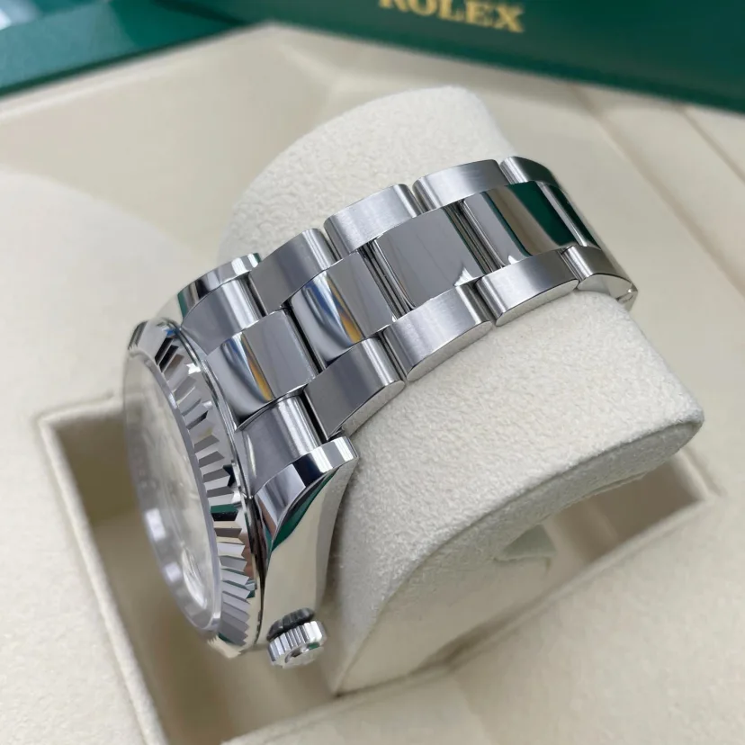 The Rolex fluted bezel is a mark of distinction. Originally, the fluting of the Oyster bezel had a functional purpose: it served to screw the bezel onto the case helping to ensure the waterproofness of the watch. It was therefore identical to the fluting on the case back, which was also screwed onto the case for waterproofness, using specific Rolex tools. Over time, the fluting became an aesthetic element, a genuine Rolex signature feature. Today the fluted bezel is a mark of distinction, always in gold.