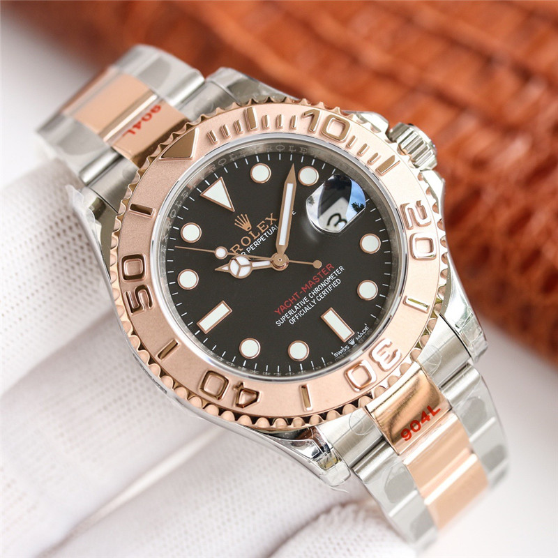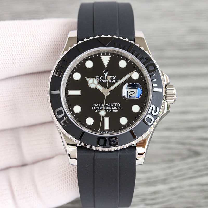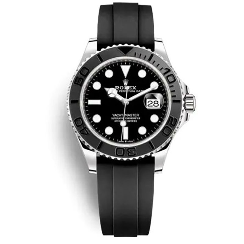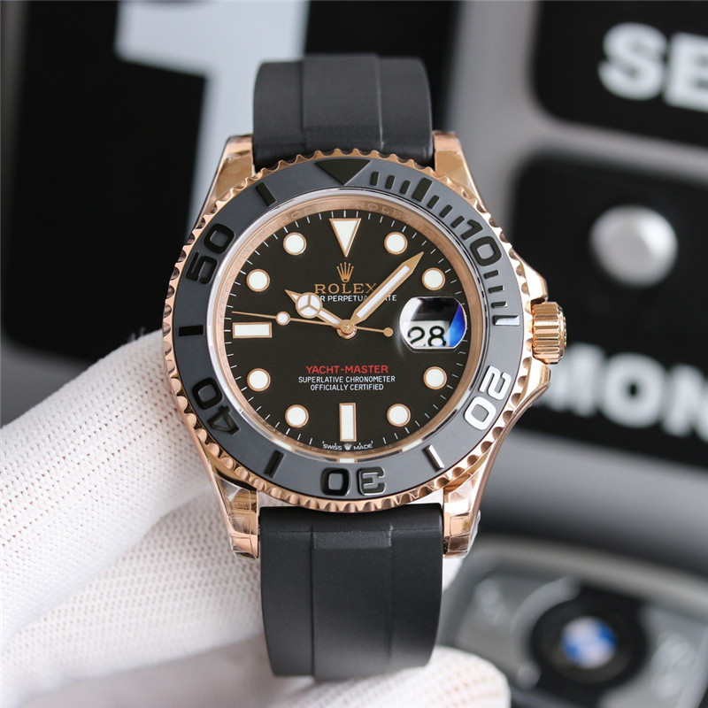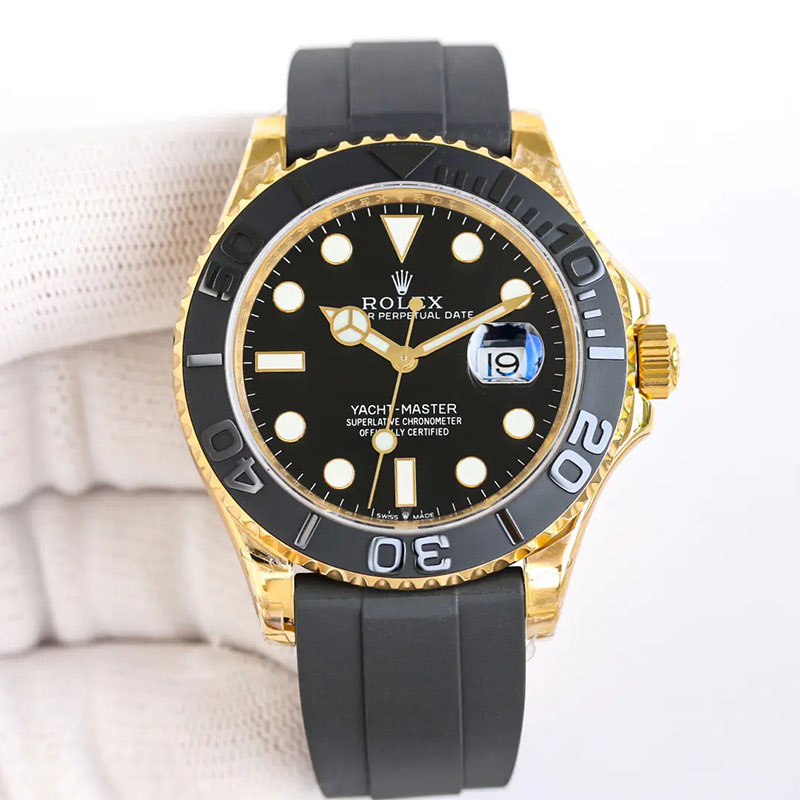 Yacht Master 1 Golden Diamond Bezel Black Dial Rubber Strap 40mm