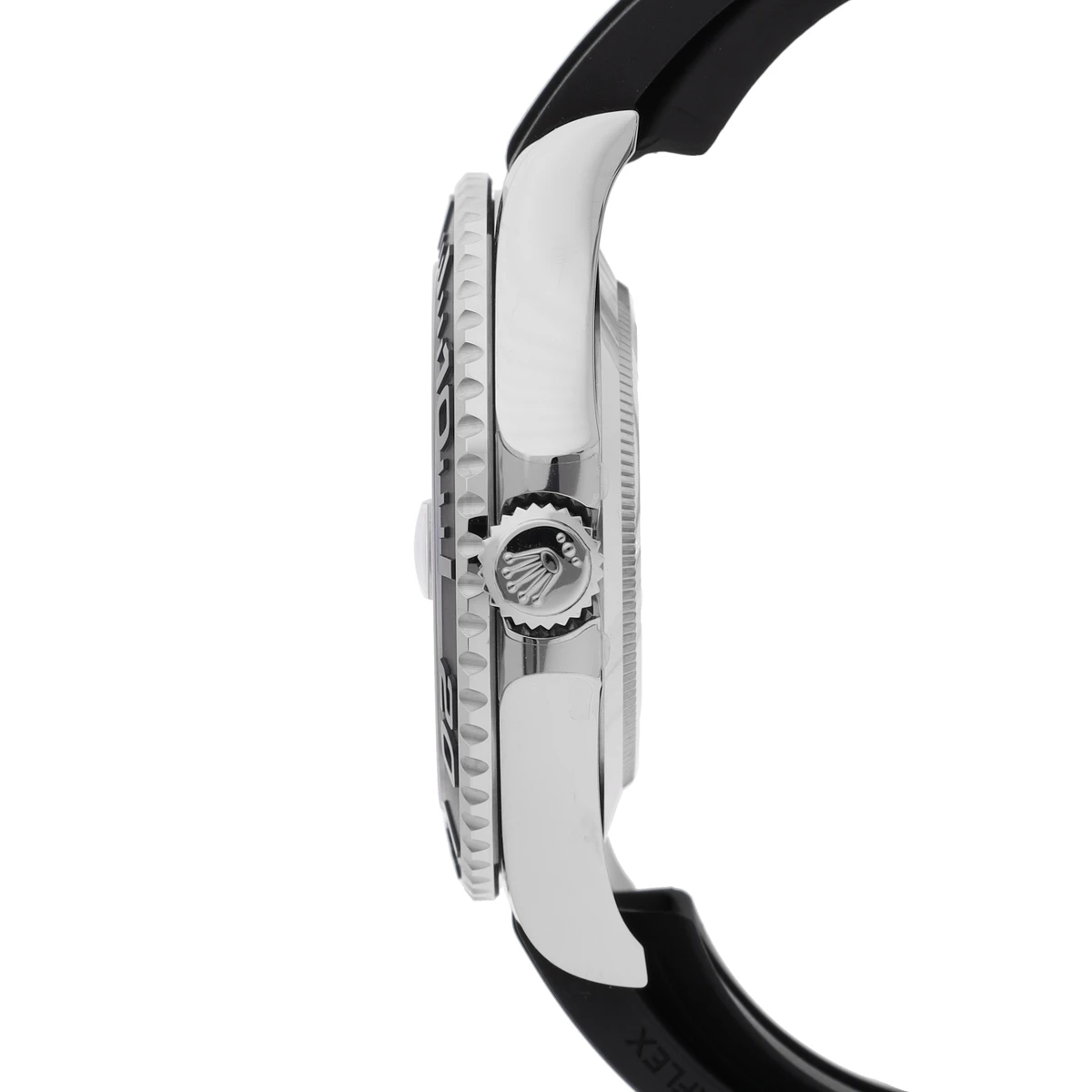 Bidirectional rotatable 60-minute graduated bezel with matt black Cerachrom insert in ceramic, polished raised numerals and graduations