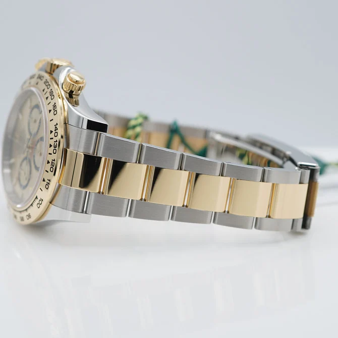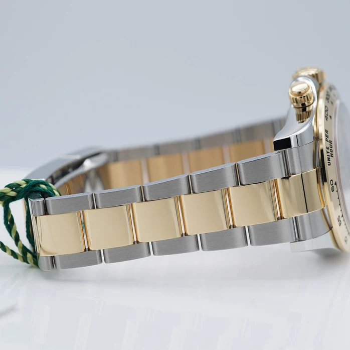 Gold is coveted for its lustre and nobility. Steel reinforces strength and reliability. Together, they harmoniously combine the best of their properties. A true Rolex signature, Rolesor has featured on Rolex models since the early 1930s, and was trademarked as a name in 1933. It is one of the prominent pillars of the Oyster collection.