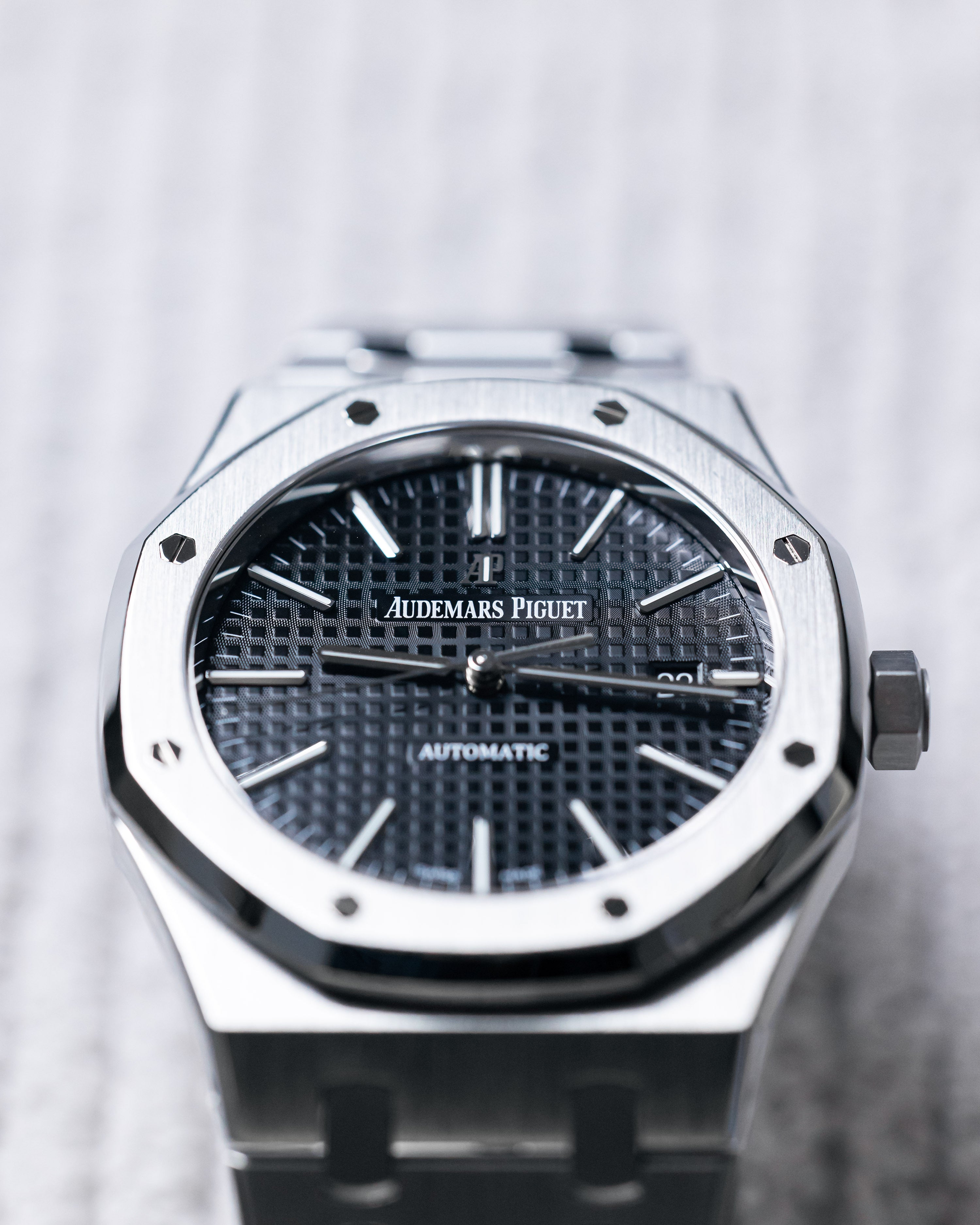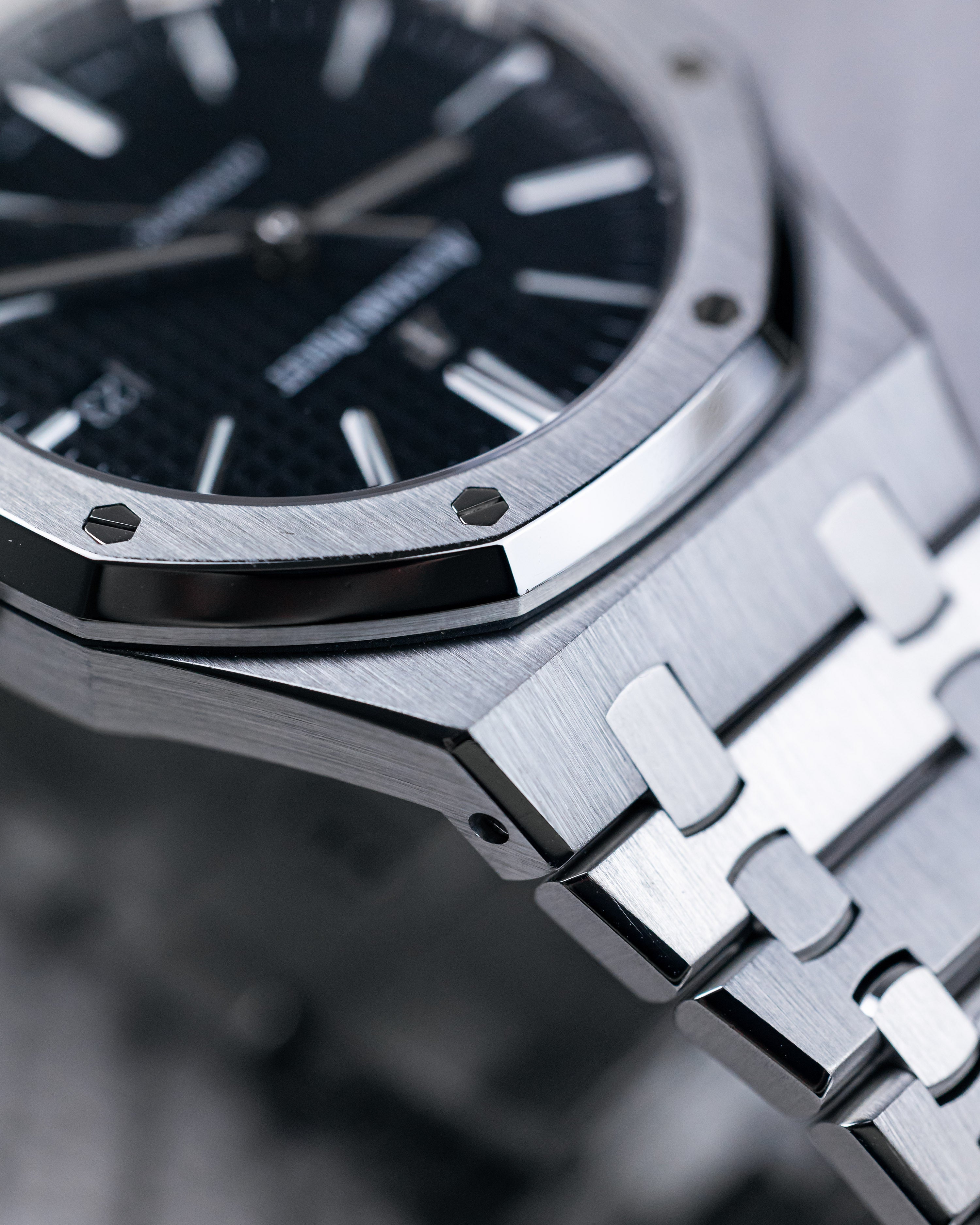Selfwinding watch with date display and centre seconds, sized at 41mm featuring a black dial with “Grande Tapisserie” pattern.