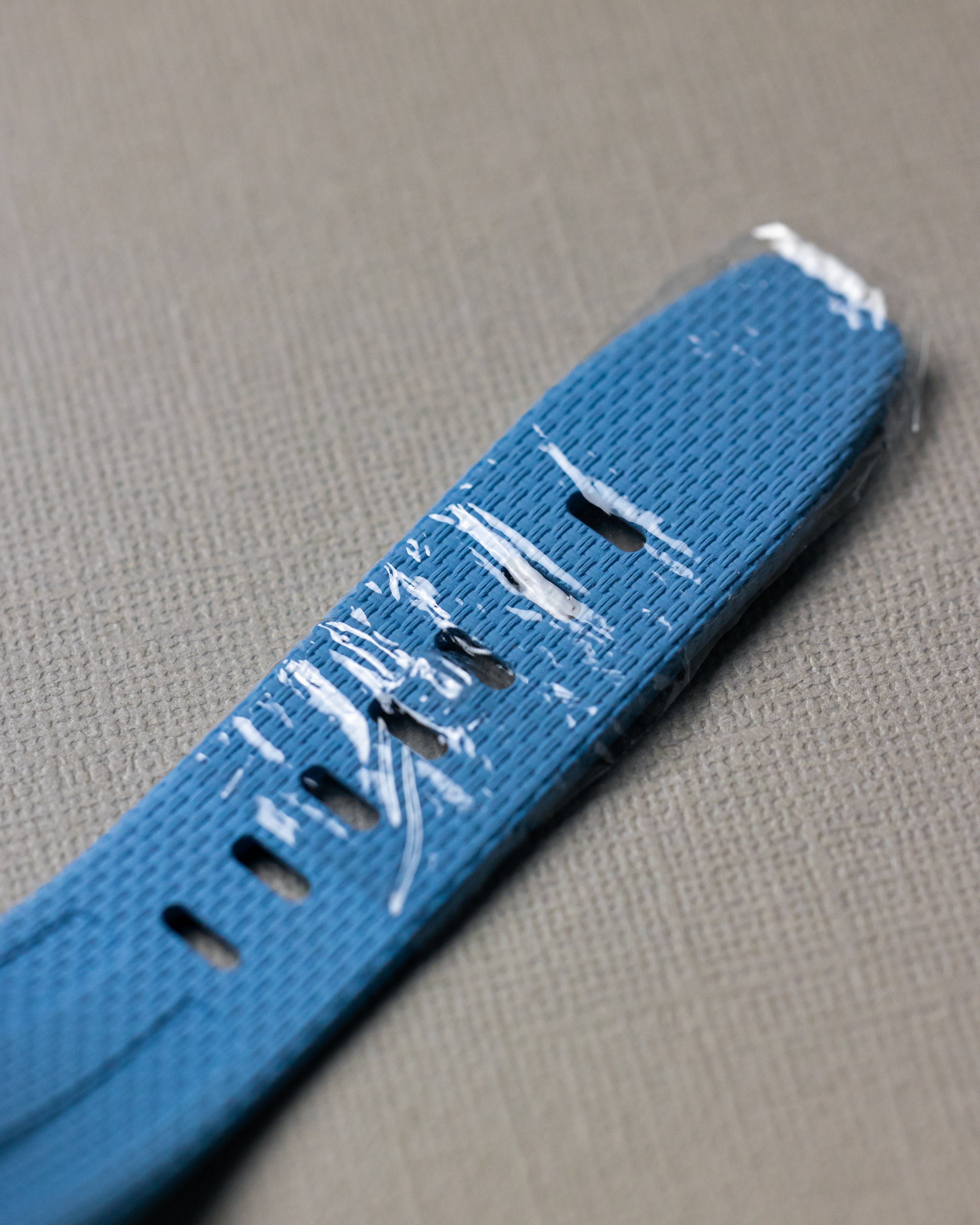 Vibrant light blue dial paired with a matching rubber strap with textile decoration adds personality to this sporty watch!