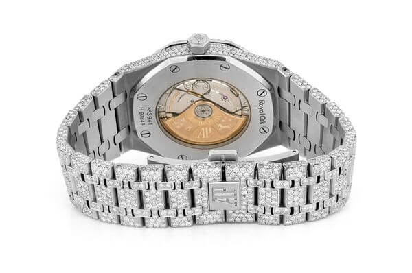 This stainless steel Audemars Piguet iced out Royal Oak boasts 26.00 ctw worth of diamonds. Our skilled watchmakers have given this watch a thorough cleaning in accordance with Audemars Piguet quality standards. The Audemars Piguet box is included with this watch.