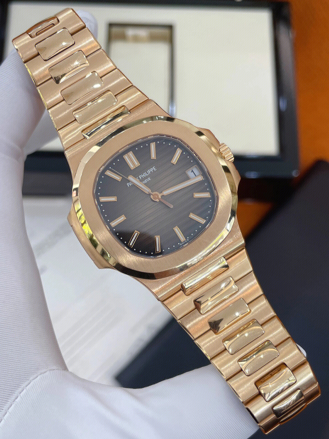 It’s the details that make the difference, and in the case of the 5711R it’s the rose gold date window surround, indices surrounds and hand detailing - just perfect with that rich chocolate brown dial