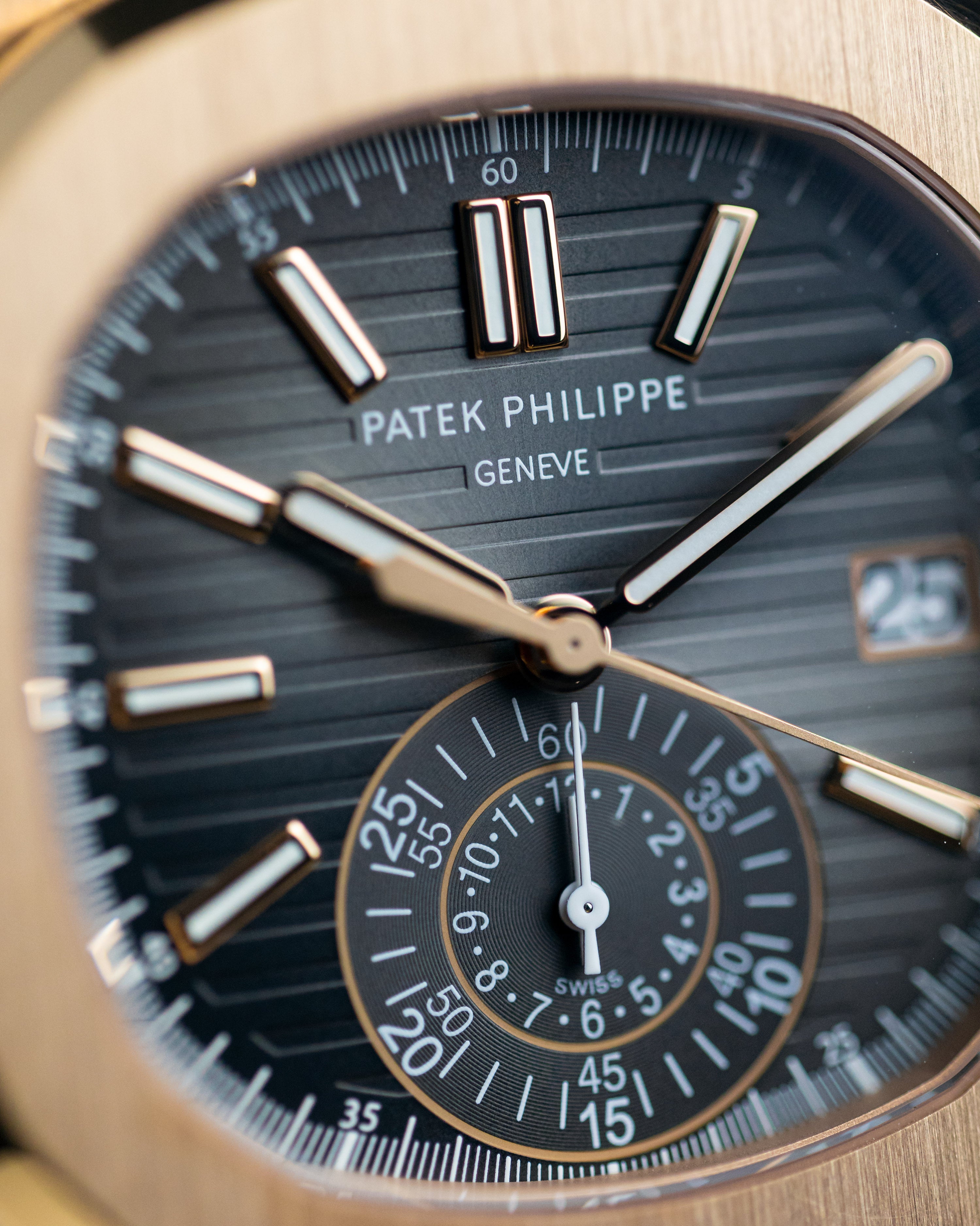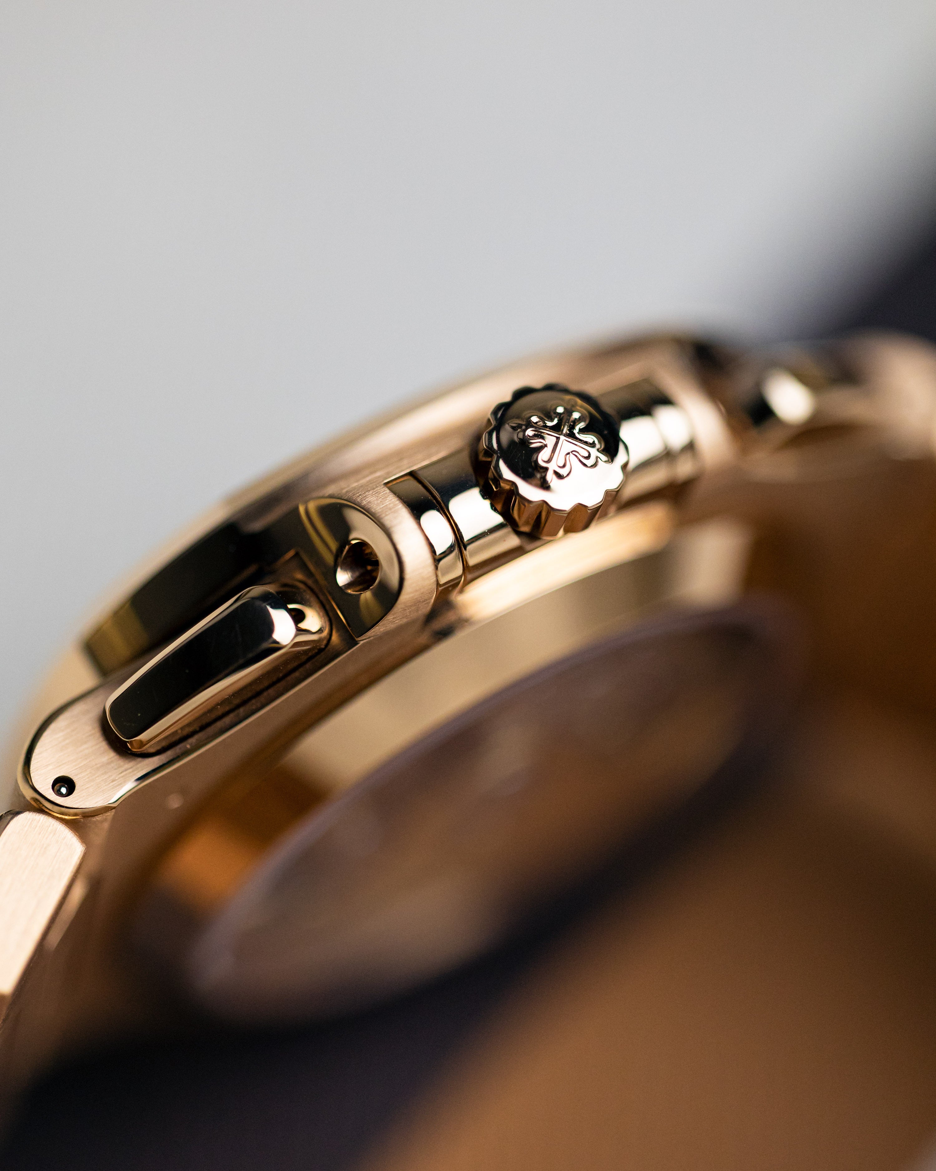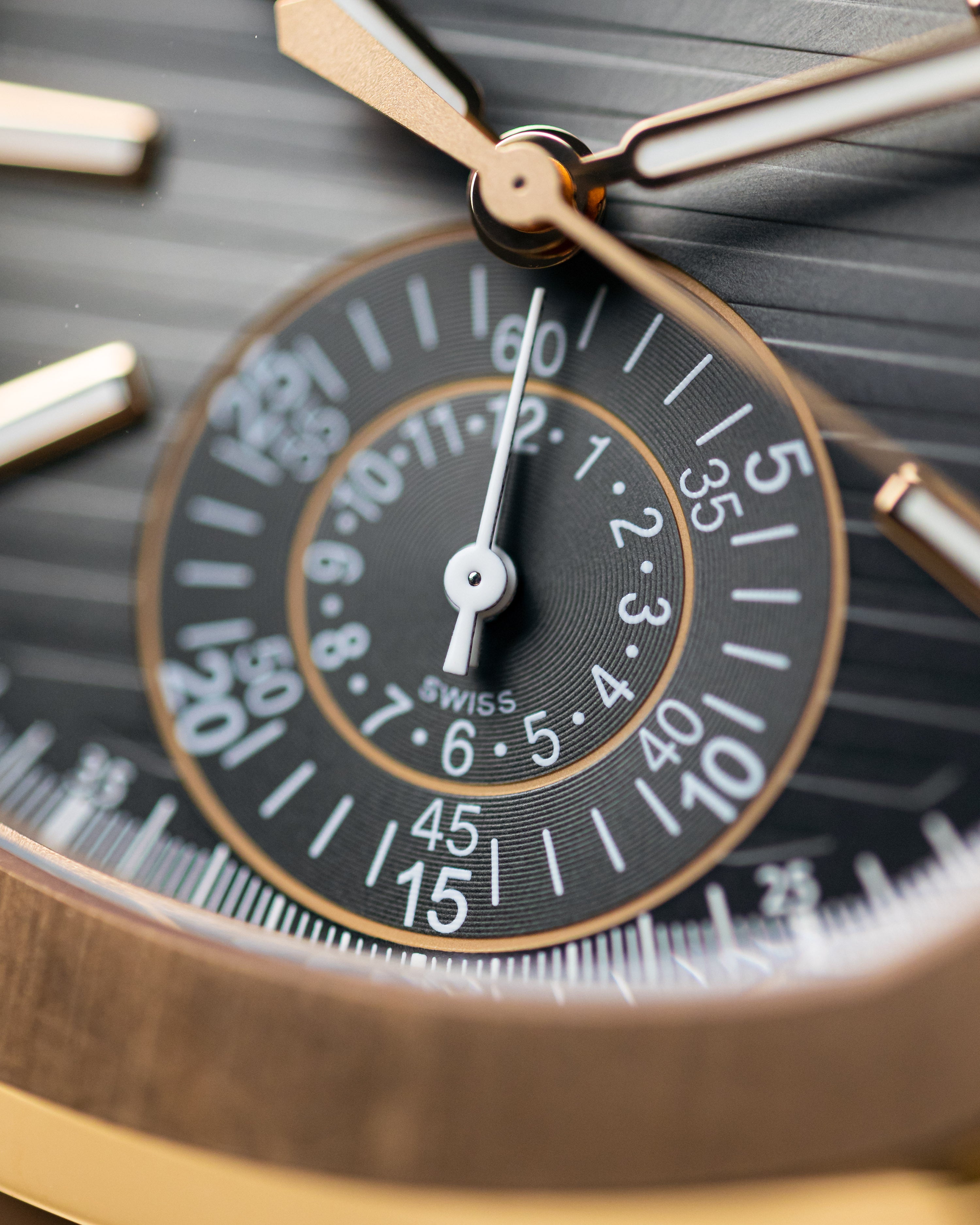 The big boy Nautilus in rose gold, featuring a chronograph, the 5980 is widely considered to be the best size for the Nautilus, not too thin like the 5711 and not too thick like the 5990 - it's really the one to have.