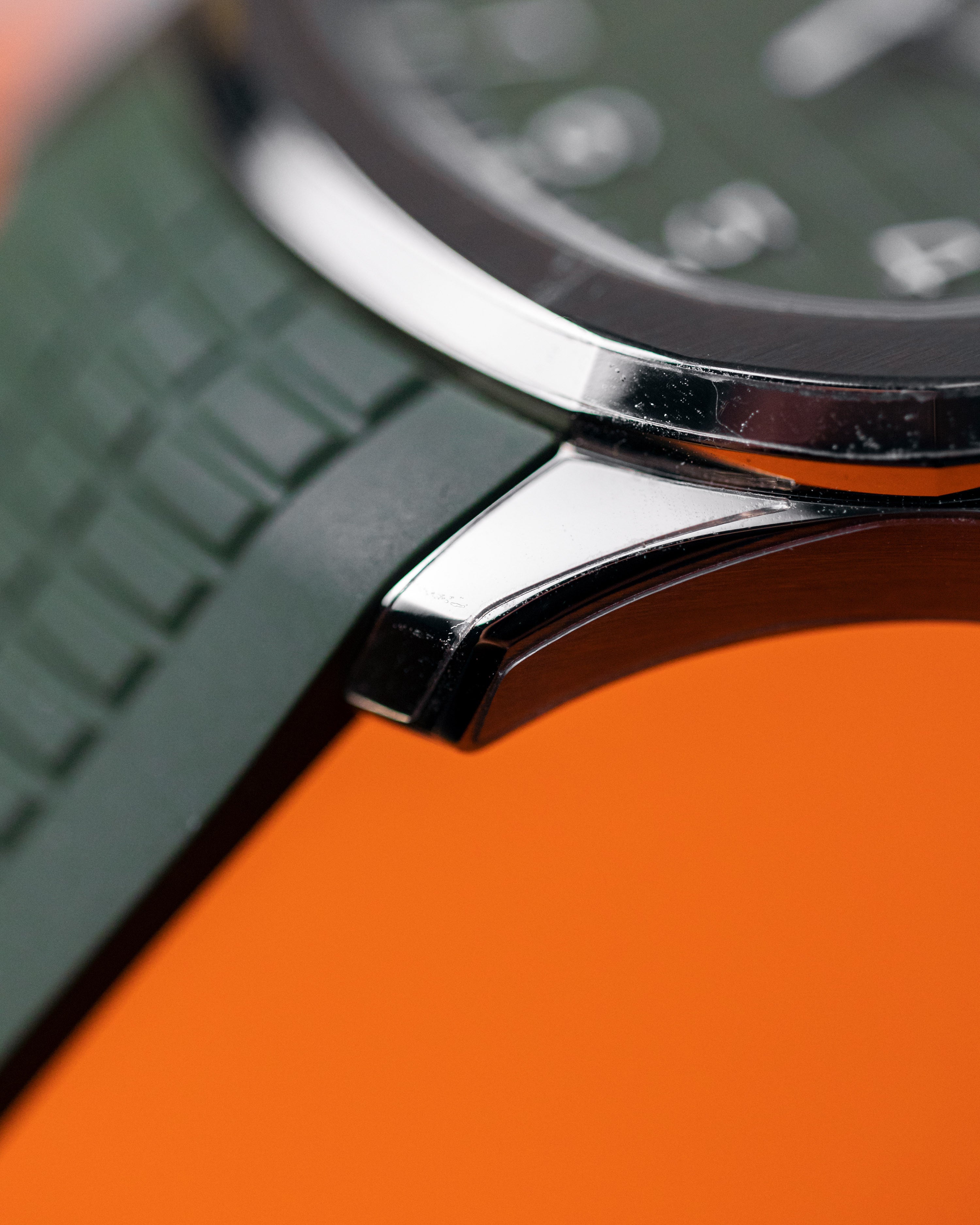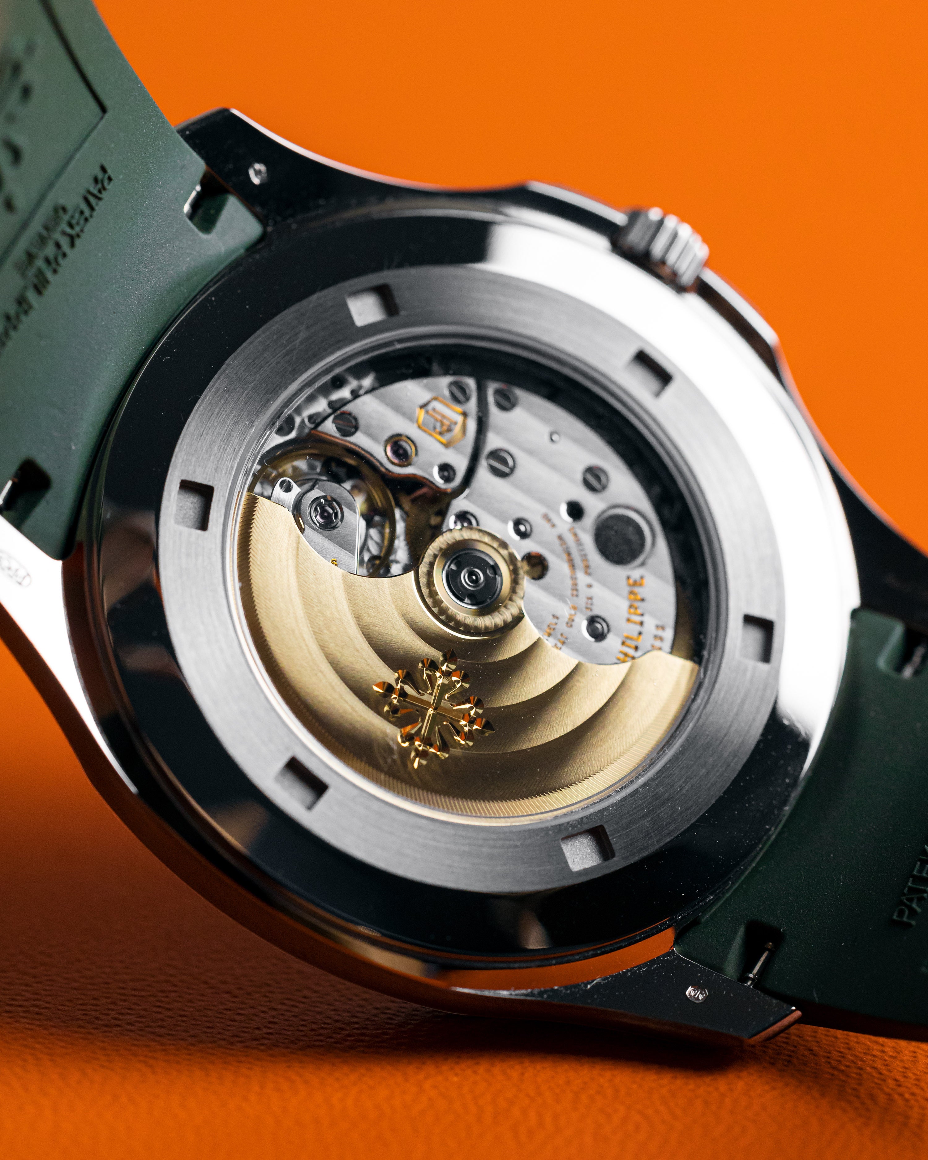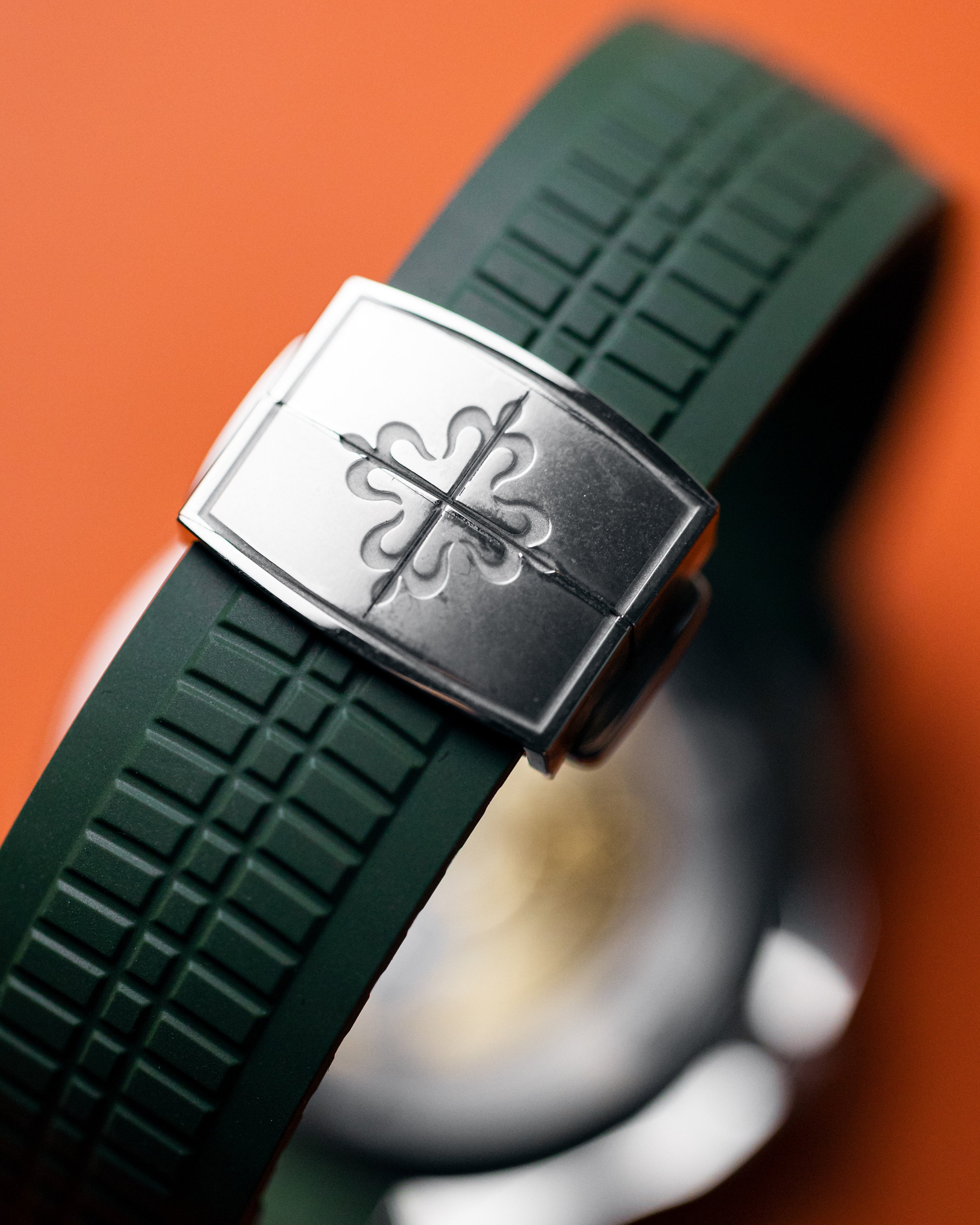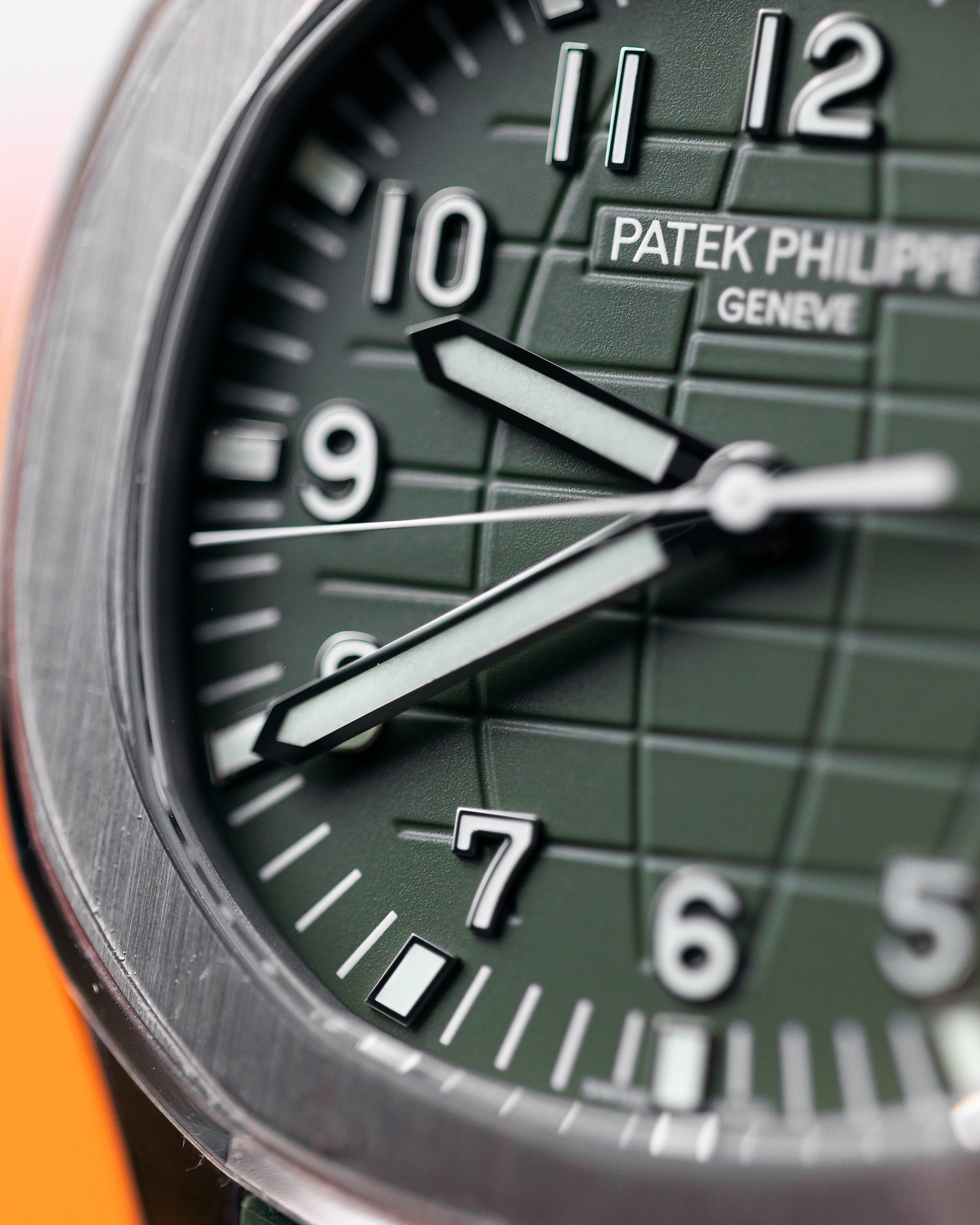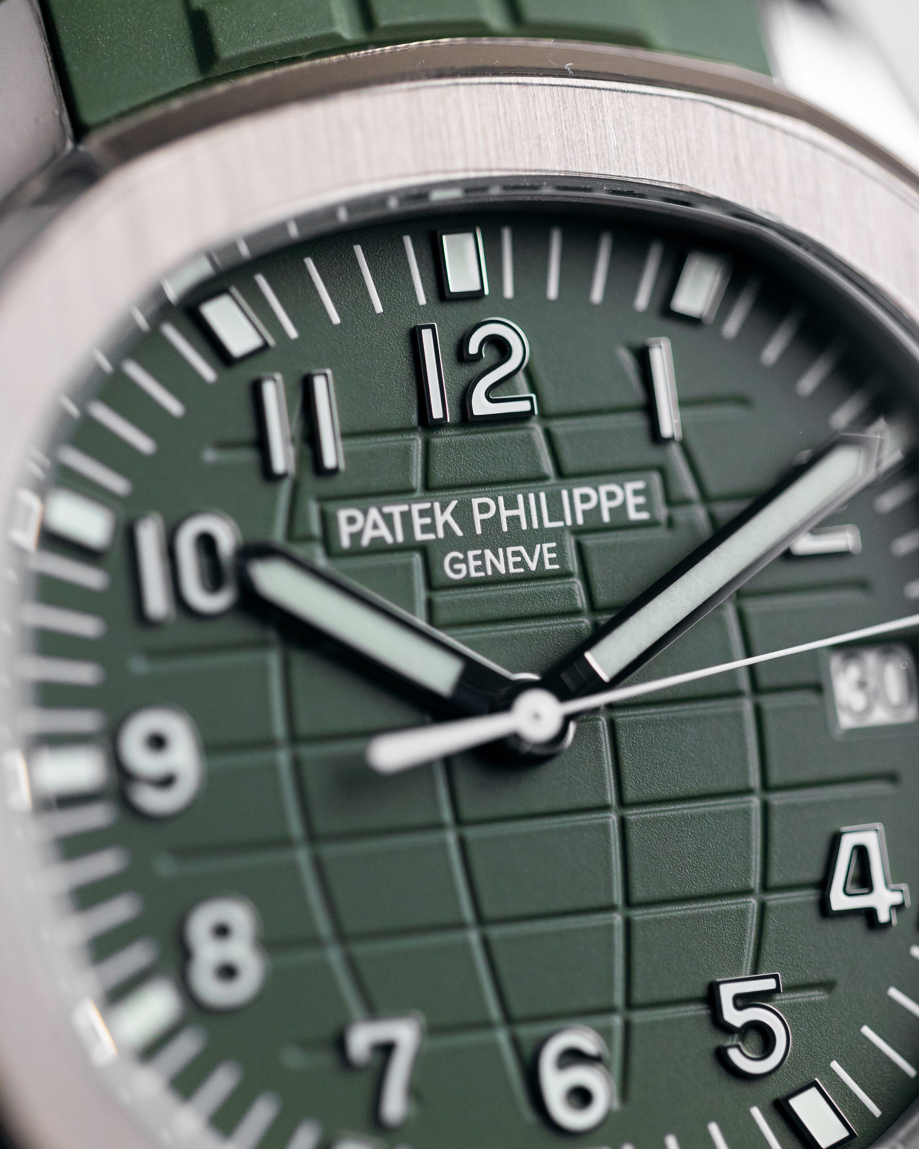 One of the coolest Patek Philippe creations, the white gold jumbo Aquanaut with khaki green dial and matching strap. This watch wears incredibly well and looks amazingly cool.