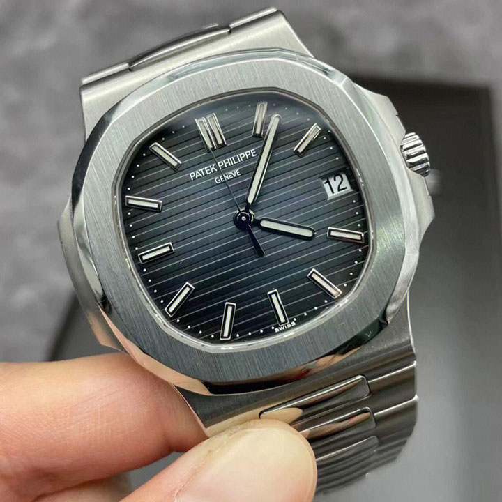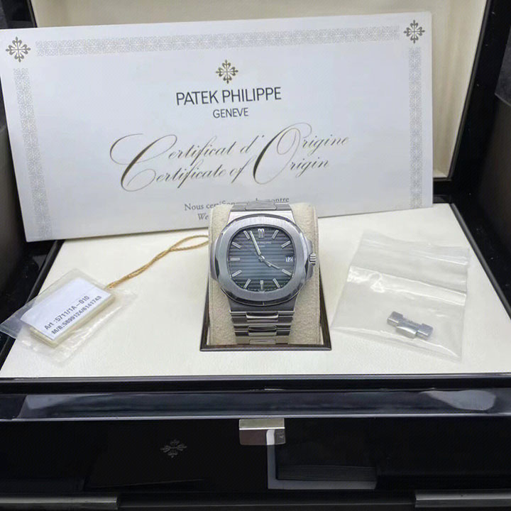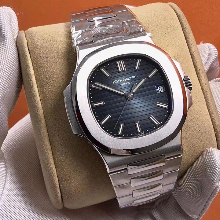 Patek Philippe Nautilus Watches. 40mm stainless steel case, sapphire crystal back, screw-down crown, black-blue dial with gold applied hour markers with luminescent coating, self-winding caliber 324 SC movement with date and sweep second hand, approximately 45 hour of power reserve, stainless steel bracelet. Water resistant to 120 meters.