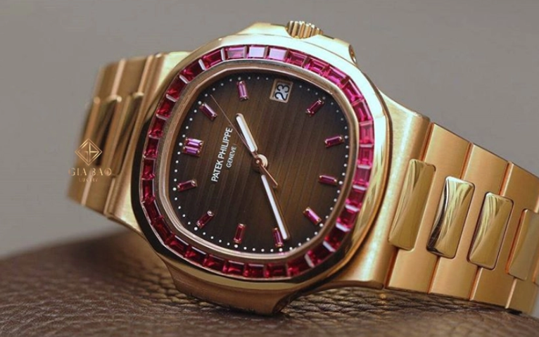 This Certified Genuine New Patek Philippe Nautilus Watch, Reference: 5723/112R-001, comes in a rose gold 40mm round case with screw-down crown and gemstone setting. This men's Patek Philippe Nautilus watch has an attractive dial with gemstone dial markers. The Swiss-certified Patek Philippe automatic movement will record perfect time for you. Elegantly designed Patek Philippe rose gold watch with a folding clasp will look beautiful on the wrist.